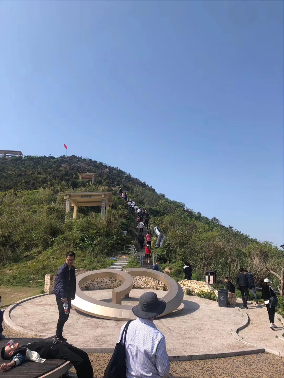一個(gè)一個(gè)緊緊跟隨著,充滿著激情,一步一往上攀登,最終抵達(dá)綠道至高點(diǎn):網(wǎng)紅觀景臺(tái),并在這里留下勝利的笑影。海風(fēng)陣陣,吹干了路程中留下的汗水。站在最高點(diǎn)上放眼望去,著實(shí)有“一覽眾山小”的感覺。這讓大家感觸到,只有奮勇攀登,堅(jiān)持到底,才可一覽無限風(fēng)光!